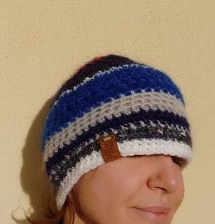 Berretto handmade all'uncinetto con utilizzo di 100% lana mohair vintage perfettamente conservata dagli anni '80. Cappello in lana dai toni blu con un pizzico di grigio e una piccola banda rossa. il piccolo giro di bordatura della cuffia è in fibra sintetica bianca. Unisex. Vestibilità comoda 57/58. Raccomandato lavaggio a mano in acqua fredda con detergente per lana o delicati. No asciugatrice